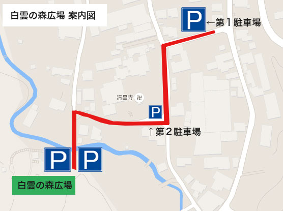 ※現在「白雲の森広場」付近にて砂防堰堤工事を行っています。(令和8年8月まで工事予定)