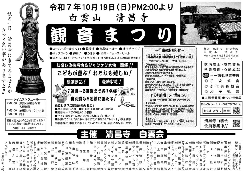 秋のよき日に清昌寺「観音まつり」へどうぞお越しください。